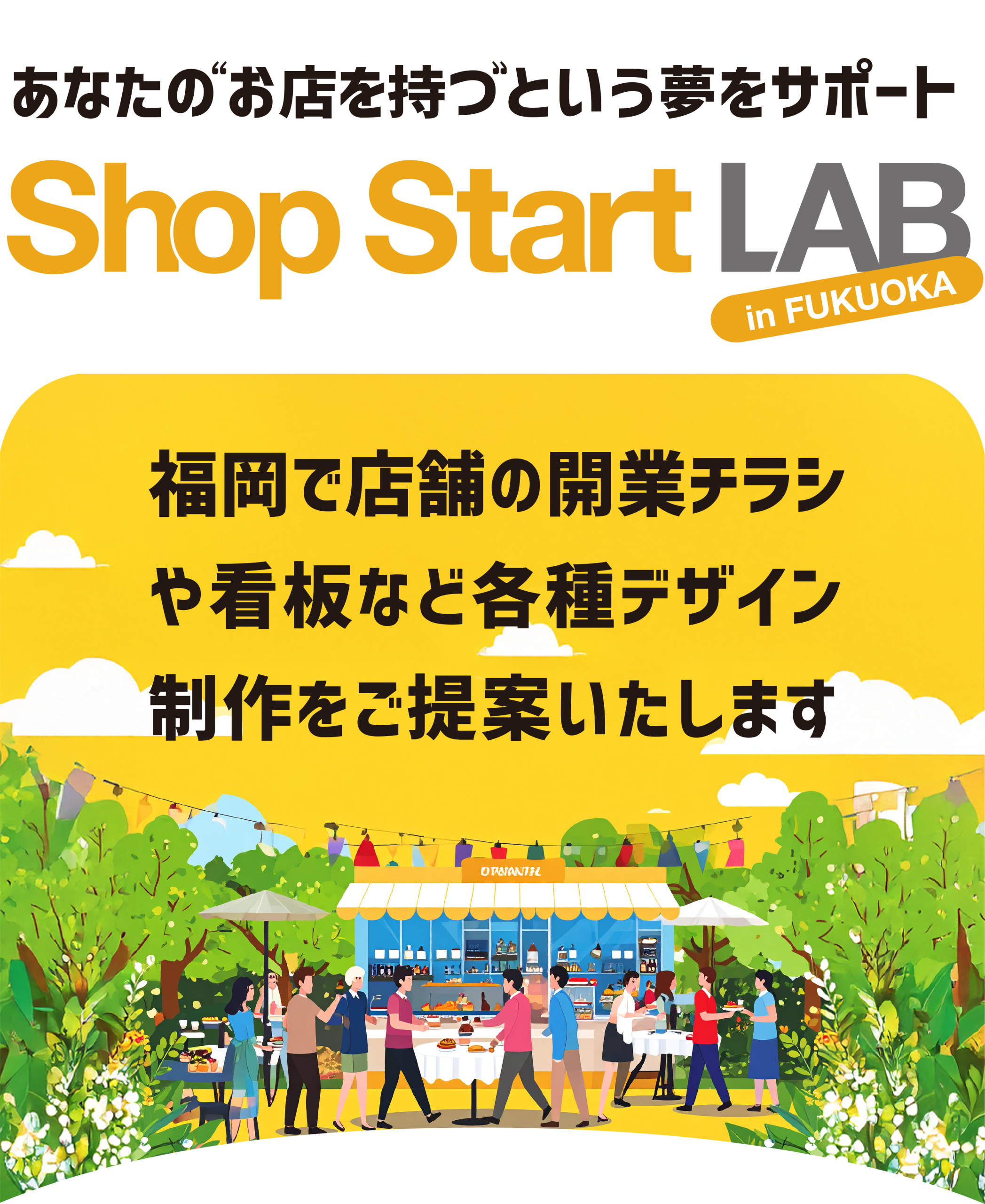 福岡市を中心に、店舗オープンに必要なロゴ・チラシ・メニュー・名刺・チラシ・看板・店舗装飾などをトータルでサポートします。初めての方にも安心してご相談いただけるよう、料金目安も掲載中。現地視察を行い、実際の環境に合わせたご提案を心がけています。丁寧なヒアリングで、理想の店舗づくりをお手伝いします